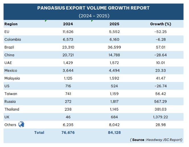 (Brazil continues to lead Headway’s global pangasius transport network) Headway JSC Achieves Impressive Growth In Pangasius Exports To Brazil In 2025